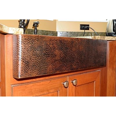 Soluna Fernanda 30 Copper Farmhouse Sink With Reinforced Apron Front In Rio Grande Finish Single Well Hammered Copper Kitchen Sink With Flat Apron Handcrafted Deluxe Copper Kitchen Sink Amazon Com from images-na.ssl-images-amazon.com A timeless classic, the heritage copper farmhouse sink is an undermount design with a beautiful hammered finish, built to last from 14 gauge american entice the focal point of your kitchen area with the luxuriously designed heritage copper farmhouse sink, a visual masterpiece that boasts. Pros and cons of a copper farmhouse sink. Looking for the best copper farmhouse kitchen sink? Lordear 24 inch fireclay farmhouse kitchen sink single bowl sink. Copper farmhouse sink installation considerations. Copper farmhouse sinks offer a dramatic makeover for your kitchen. 21 posts related to hammered copper farmhouse sink 30. Add in the distinctive texture and coloration of its hammered copper apron front, and there's just no telling how far this sink will go!